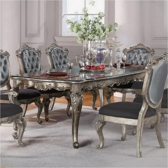 Source: Acme 60540-42-43 7 pc Astoria grand petrin chantelle antique silver finish wood dining table set