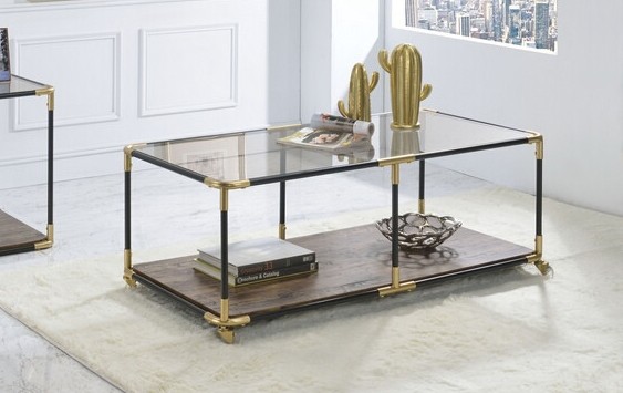 Source: Acme 81010 Heleris black and gold finish metal frame glass coffee table