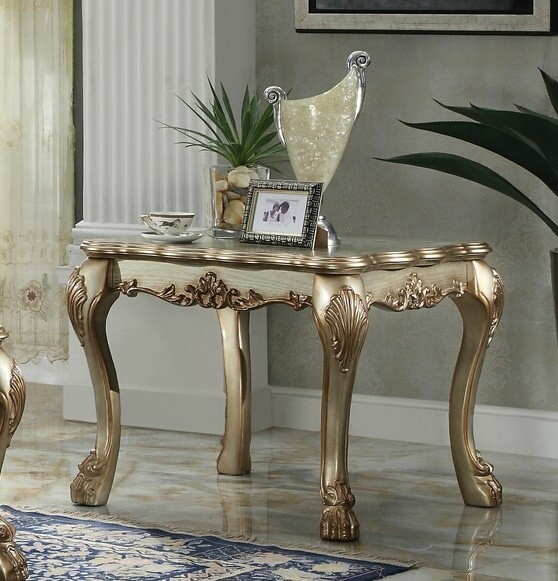 Source: Acme 83161 Dresden gold patina finish wood carved accents rectangular chair side end table