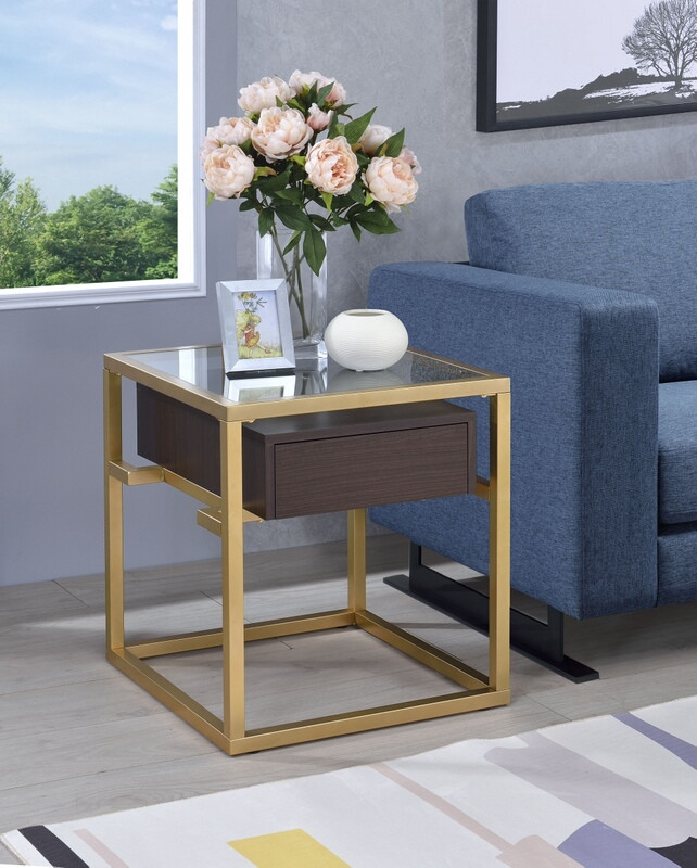 Acme 83342 Yumia II gold finish metal frame glass chair side end table