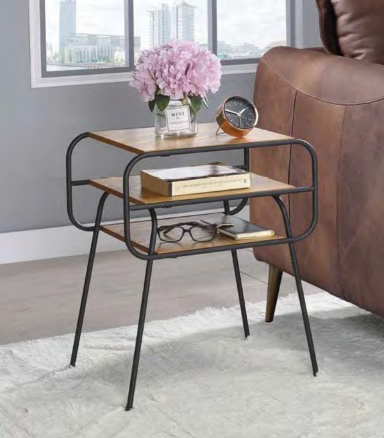 Acme 83870 Ivy bronx lattimer kaseko oak finish top black finish frame end table. Measures 20″ x 13″ x 23″ H. Some assembly required.