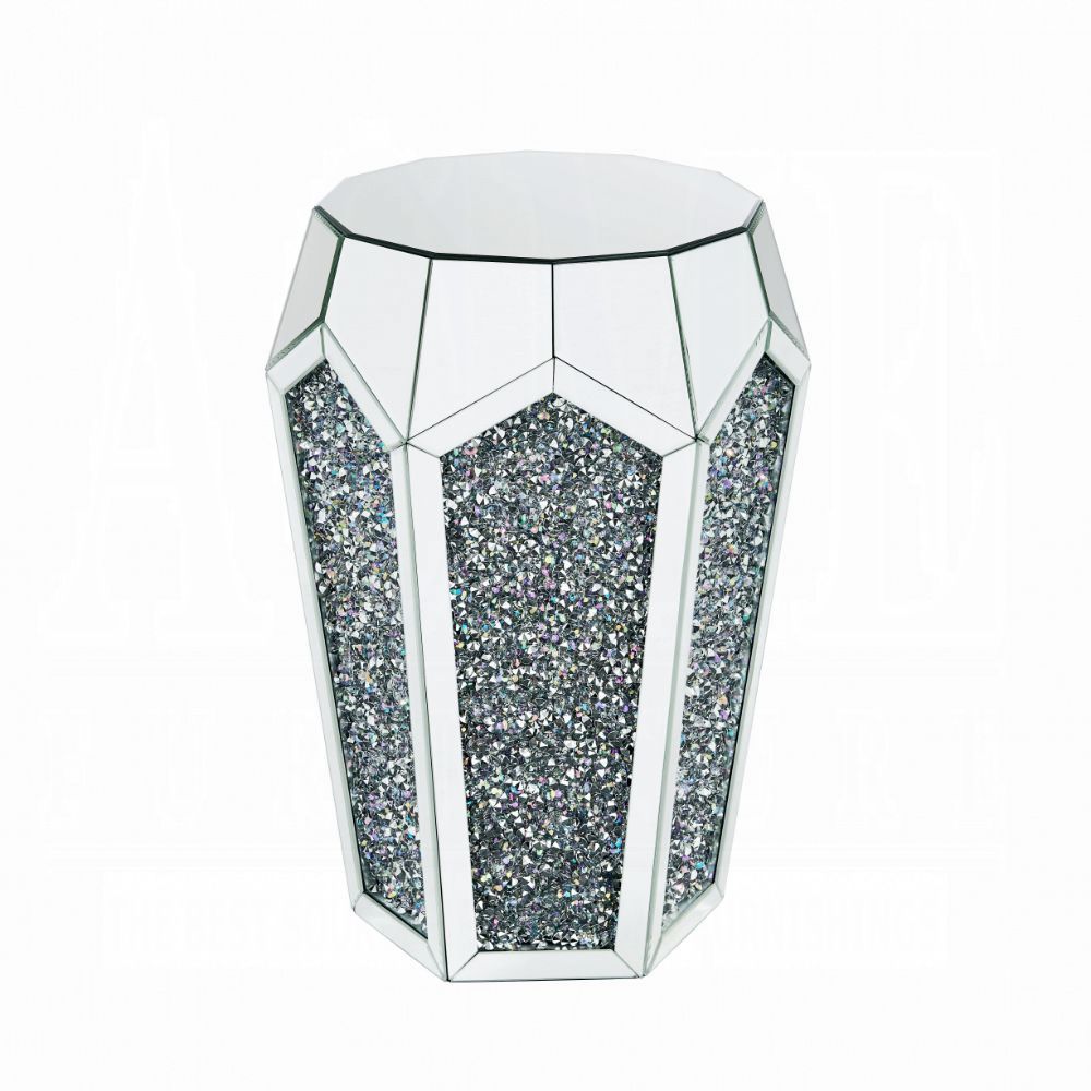 Source: Acme 88007 Noralie mirrored faux diamond 18″ round glass top end table