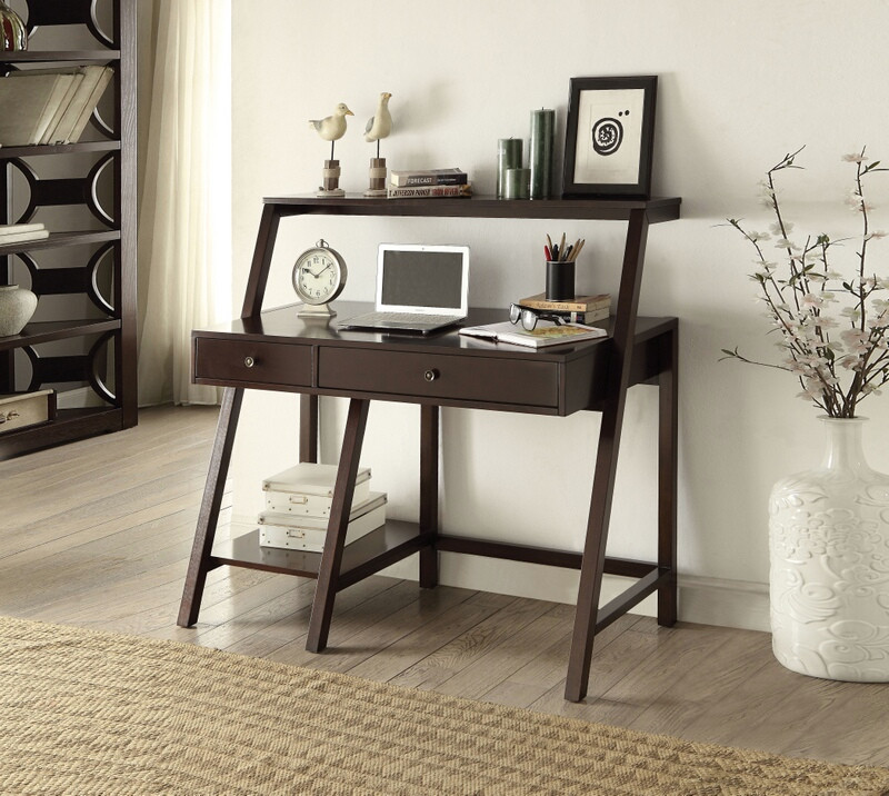 Source: Acme 92252 Dacia espresso finish wood desk with hutch and shelf set