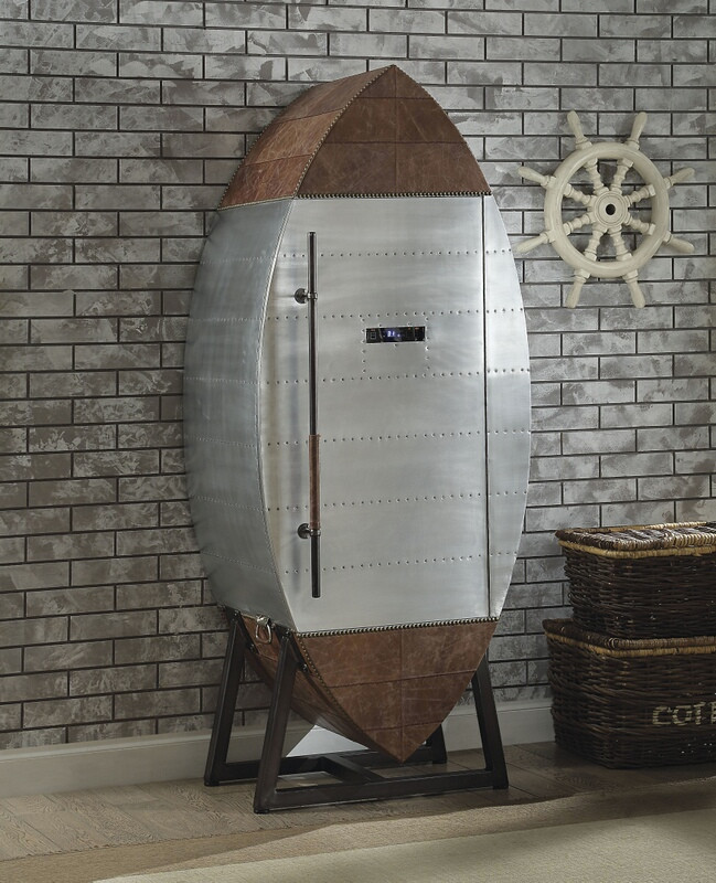 Source: Acme 97195 Brancaster aluminum finish wine chiller refrigerator cabinet with glass rack
