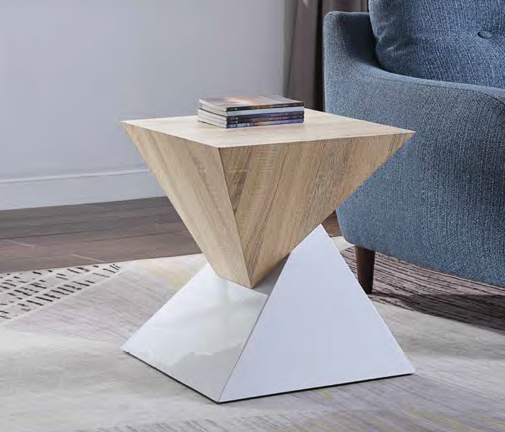 Acme 97595 Orren ellis murtaz otith modern natural and white high gloss finish end table. Measures 20″ x 20″ x 20″ H. Some assembly required.