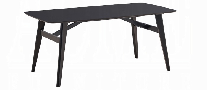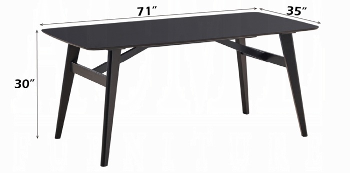 Acme DN02366-7PC 7 pc Eliora black finish wood mid century modern dining table set camel colored chairs. This set includes the table, 6 – side chairs. Table measures 31.5″ W x 63″ L x 30″ H. Chairs measure 19.75″ x 21.75″ x 32″ H to the back. Additional chairs and server also available separately at additional costs. Some assembly required.
