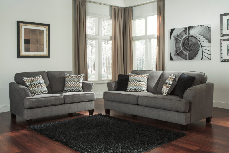 Ashley Furniture 41201-38-35 2 pc Gayler collection steel fabric upholstered sofa and love seat set with rounded arms