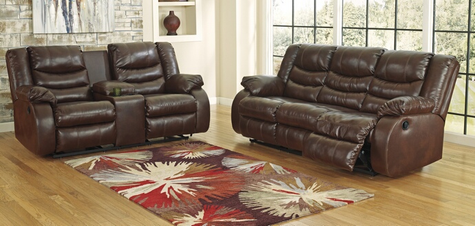 2 pc Linebacker collection espresso colored durablend leather upholstered sofa and love seat set with recliners on the ends. This set includes the sofa and the love seat with recliners on the ends. Sofa measures 87″ x 40″ x 40″ H. Love seat measures 76″ x 40″ x 40″ H. Some assembly required.