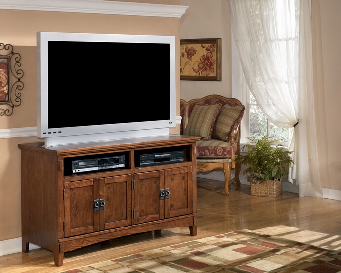 Cross island II collection casual style medium brown finish wood tv stand. TV stand measures 50″ x 20″ D x 29″ H. Some assembly required.