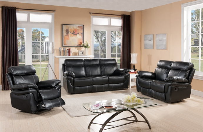 Source: Asia Direct 2100 2 pc emily collection black bonded leather recliner sofa and love seat set