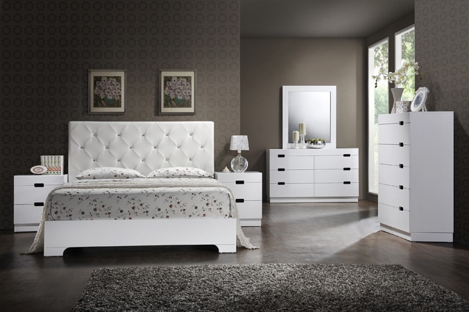 Source: Asia Direct Vicky 5 pc vicky collection glossy white finish wood modern style tufted headboard queen bedroom set