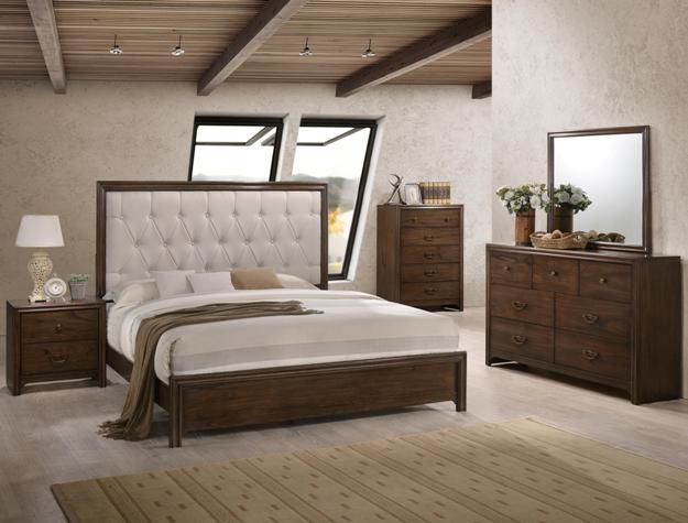 B7600-Q-5PC 5 pc chole collection contemporary style medium brown finish wood queen bedroom set