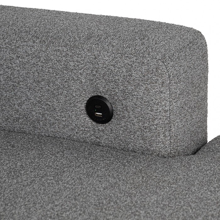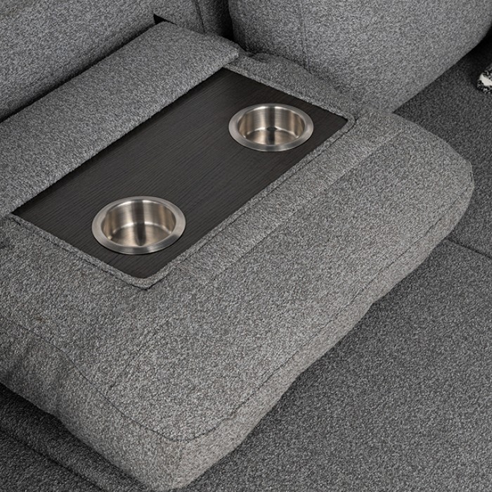 FM64005GY-RC 2 pc Chatham grey fabric 93″ sectional sofa set with storage chaise pop up sleep area and storage arms. This set includes the RAF Storage arm chaise , LAF pop up sleep area with storage arm love seat, drop down tray table in center. Sectional measures 93″ x 61″ L Chaise x 38″ H. Some assembly required.