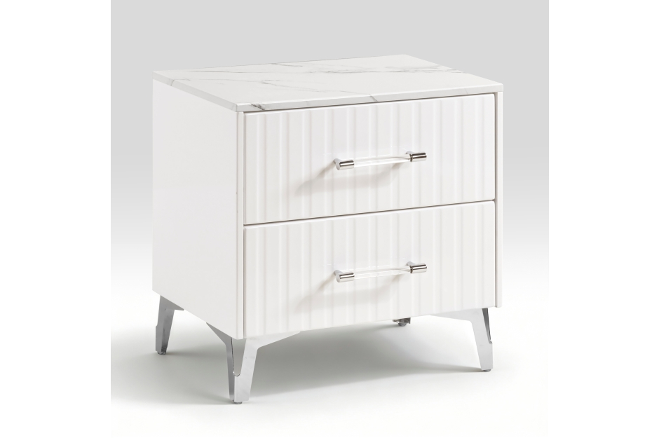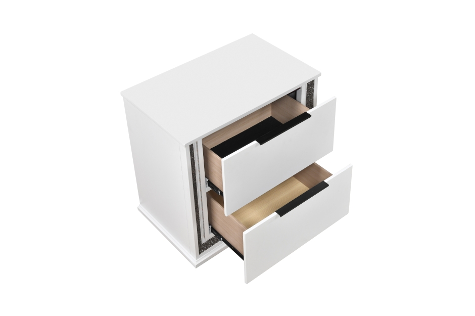 Acme BD05882-4PC Esther white and silver high gloss finish wood modern queen bedroom set LED accents. This set includes the Bed, Nightstand , dresser and mirror. Bed measures 84″ x 66″ x 57″ H. Nightstand measures 23″ x 16″ x 23″ H. Dresser measures 62″ x 18″ X 35″ H. Mirror measures 46″ x 2″ x 37″ H. Chest available separately at additional cost and measures 31″ x 18″ x 50″ H. Additional pieces also available separately at additional cost. Eastern king also available. Some assembly required.