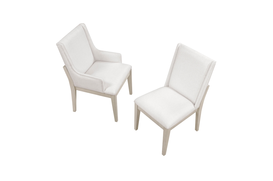 Homelegance 6000-96-7PC 7 pc Tundra antique white finsh wood dining table set. This set includes the table with leaf , 2 – arm chairs and 4 – side chairs with padded seats and backs. Table measures 42″ x 76″ ( 96″ with 20″ leaf) x 30″ H. Arm chairs measure 23″ x 24.5″ x 36.5″ H. Side chairs measure 20″ x 23.5″ x 36.5″ H. Additional chairs and Buffet also available separately. Some assembly required.