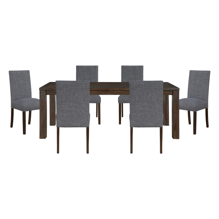 5976-5940GYS-7PC 7 pc Paulson dark brown finish wood dining table set grey chairs. This set features a dining table , 6 – side chairs. Table measures 35.5″ x 79″ x 30″ H. Side chairs measure 19.5″ x 23.5″ x 38″ H. Additional chairs available separately at additional cost. Some Assembly Required.