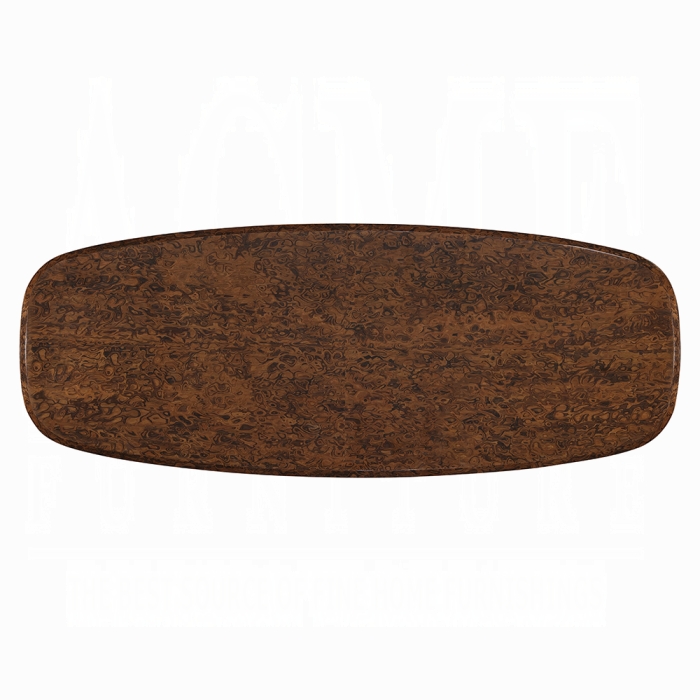 Acme DN60020-7PC 7 pc Jamonica wood grain finish top gold pedestal bases mid-century modern 120″ dining table set. Table set includes the Table, 6 – side chairs . Table measures 120″ x 48″ x 30″ H. Side chairs measure 24″ x 24″ x 37″ H . Additional chairs also available separately. Some assembly required.