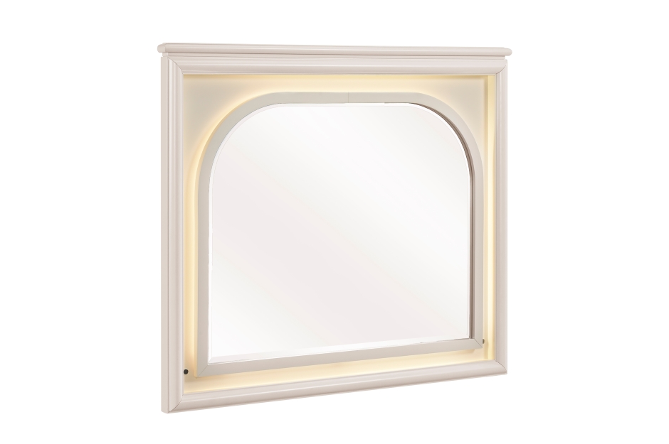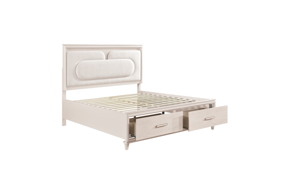 Homelegance 2451-4PC 4 pc Montrose off white finish LED fabric padded headboard queen bedroom set footboard drawers. This set includes the Bed, Nightstand, Dresser, Mirror. Bed measures 64″ x 86″ x 64″ H. Nightstand measures 27.5″ x 18″ x 25″ H. Dresser measures 60.5″ x 18″ x 37.5″ H. Mirror measures 42″ x 2.5″ x 36″ H. Chest available separately at additional cost and measures 35.5″ x 18″ x 48″ H. Also available in Cal King and Eastern King. Some assembly required.