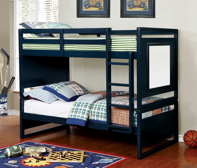 CM-BK901BL Glendale collection blue finish wood twin over twin bunk bed with drawing boards on both ends