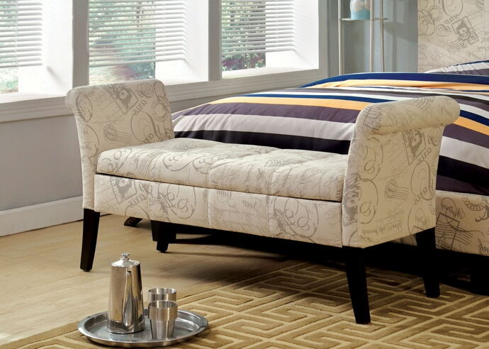 Source: CM-BN6190WT Doheny bedroom storage bench with french script flax fabric upholstery