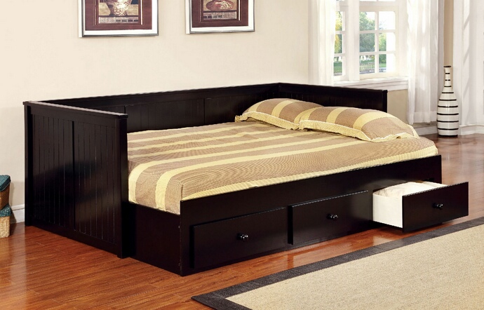 CM1927BK Wolford collection black finish wood frame full size day bed with drawers