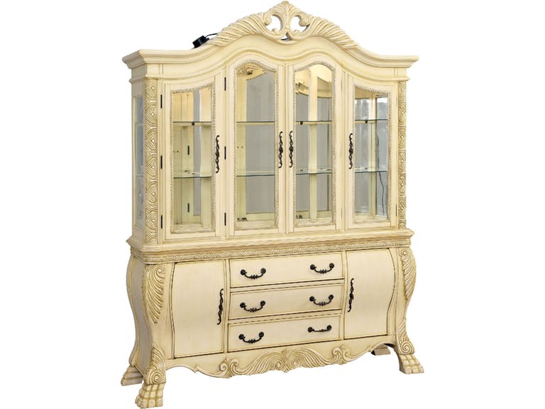 Source: CM3186WH-HB Wyndmere antique white finish wood elegant formal style dining hutch and buffet
