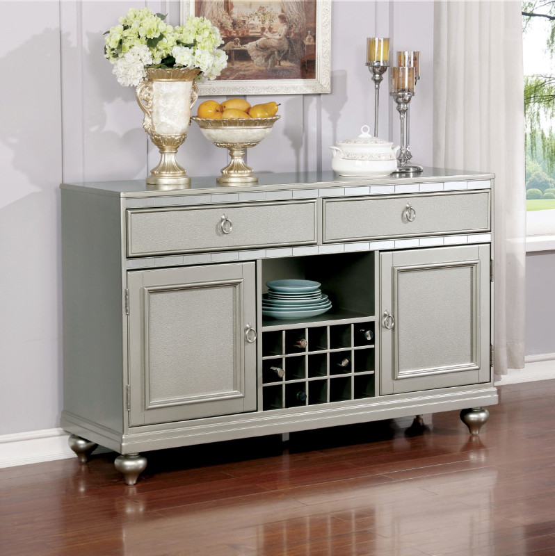 Source: CM3229-SV Sarina silver finish wood dining sideboard server console table