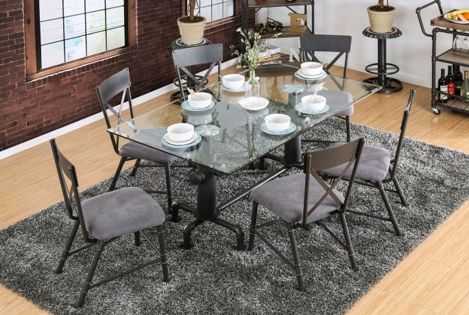 Source: CM3366T-7pc 7 pc flaherty antique black frame and glass top dining table set