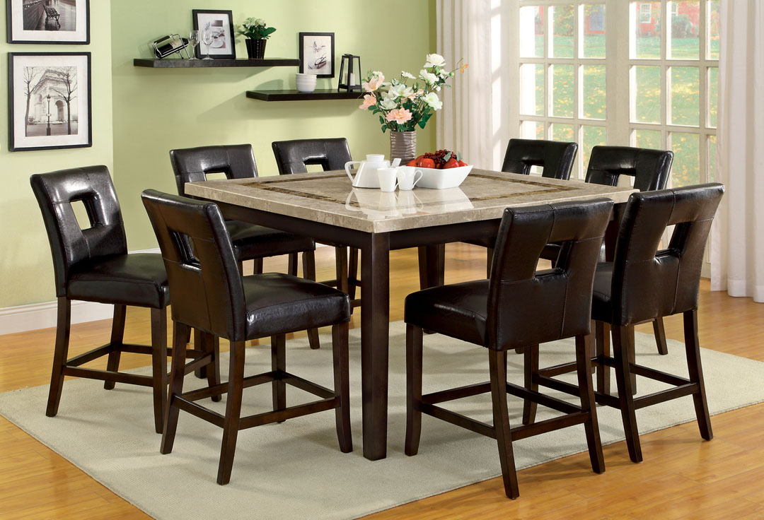 Source: CM3693PT 7 pc lisbon ii dark walnut finish wood contemporary style counter height marble top dining table set with accented border inlay color