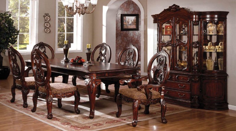 Source: CM3845CH-T 7 pc tuscany ii antique cherry finish wood elegant formal style dining table set