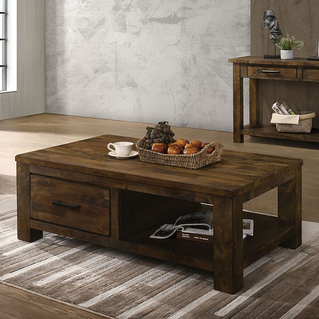 CM4910C Loon peak chepachet spring antique oak finish wood coffee table with drawers