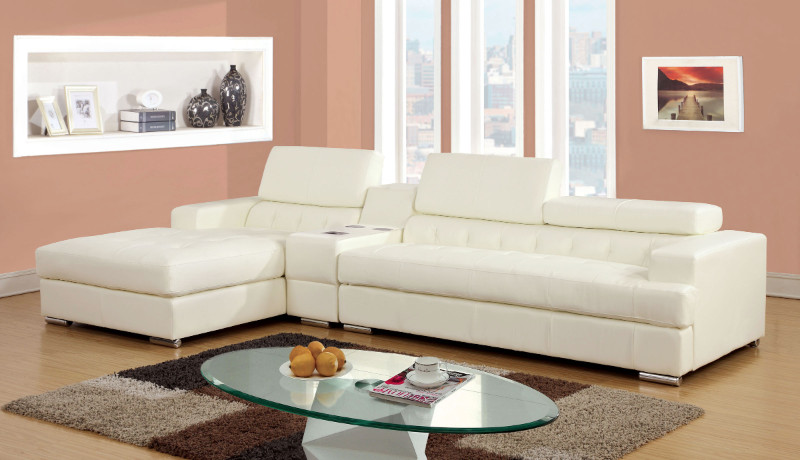 Source: CM6122WH-CS 3 pc floria white bonded leather sectional sofa with center speaker bluetooth console