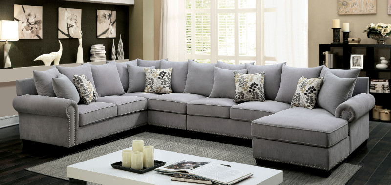Source: CM6156GY 3 pc skyler gray fabric sectional sofa with nail head trim accents