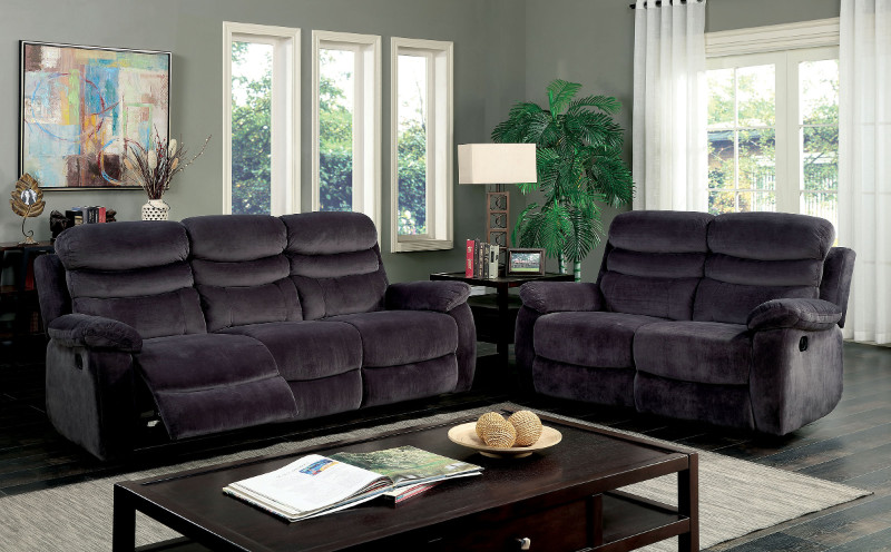 2 pc leigh gray platinum fabric sofa and love seat with recliner ends. This set includes the Sofa and love seat standard motion recliner ends. Sofa measures 82″ x 37″ x 40″ H. Love seat measures 60″ x 37″ x 40″ H. Optional single recliner available at additional cost and measures 35″ x 37″ x 40″ H. Some assembly required.