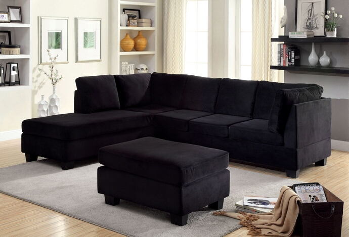 Source: CM6316 2 pc lomma black flannelette fabric sectional sofa