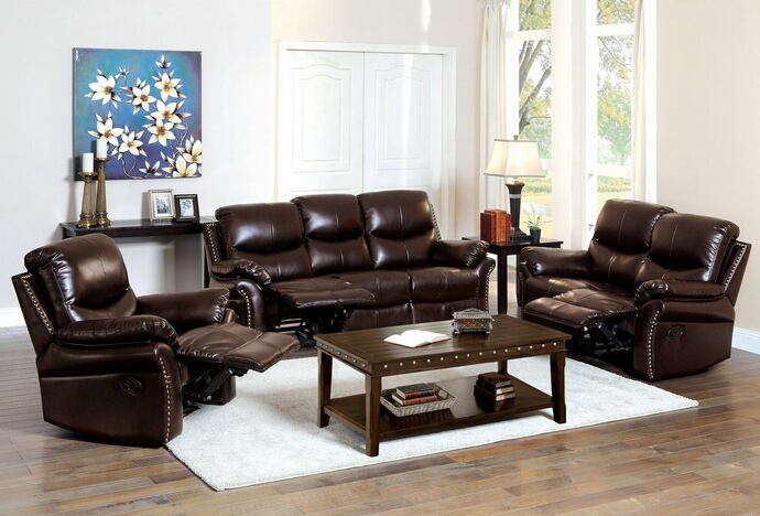 Source: CM6718 2 pc dudhope collection rustic dark brown bonded leather match upholstered sofa with recliner ends and love seat with recliner ends