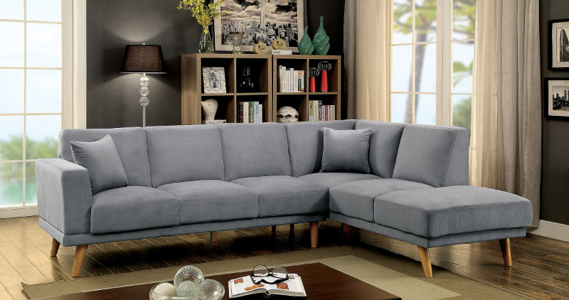 CM6799GY 2 pc hagen mid century modern gray padded flannelette fabric sectional sofa