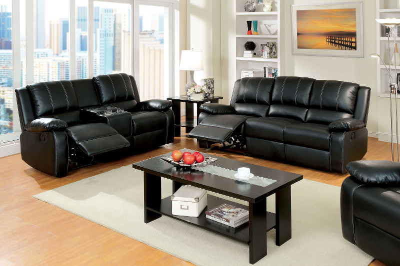 Source: CM6826 2 pc gaffey black bonded leather match sofa and love seat with recliner ends