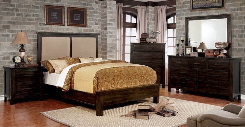 CM7423-5pc 5 pc Canopus collection dark walnut finish wood padded headboard queen bedroom set
