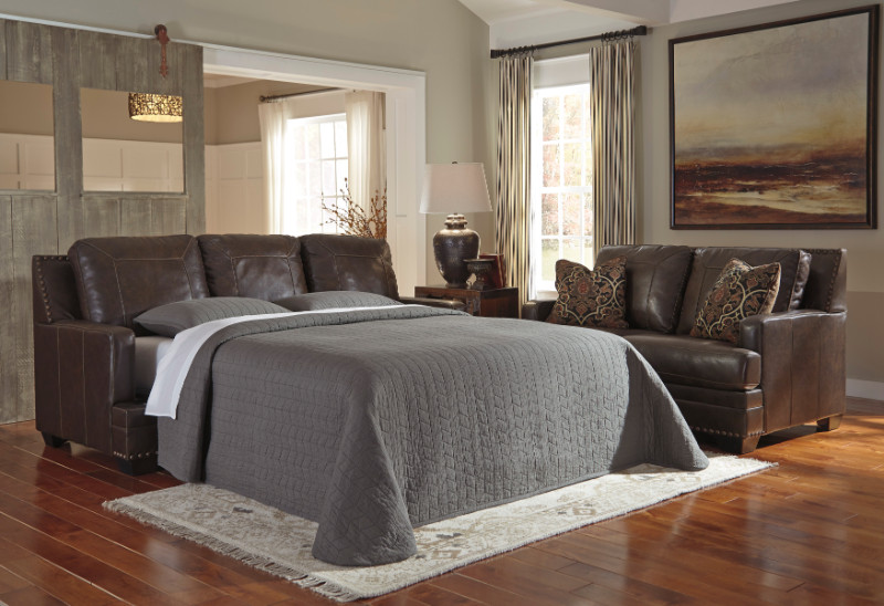 Corvan collection antique colored leather match upholstered queen sleeper sofa with setback arms. Sleeper sofa includes the Sofa with queen sleeper pull out with mattress included. Measures 89″ x 42″ x 38″ H. Some assembly may be required.