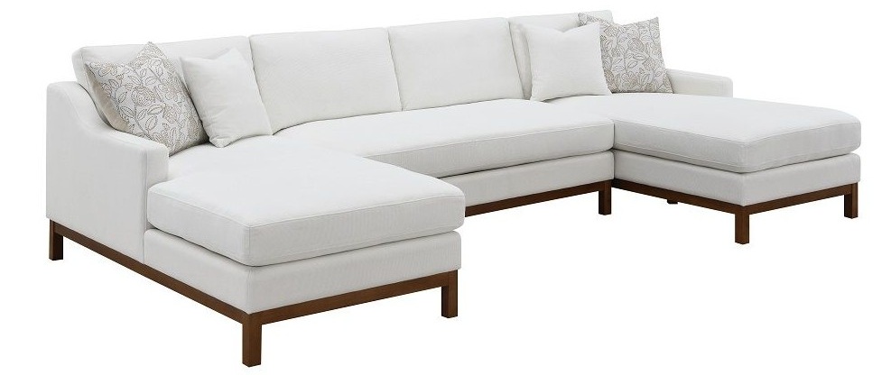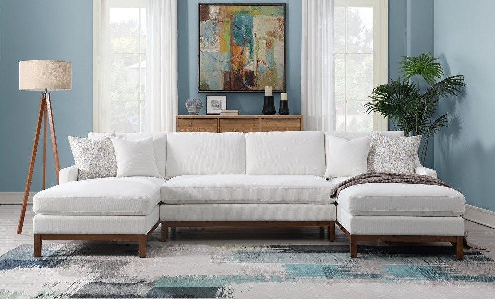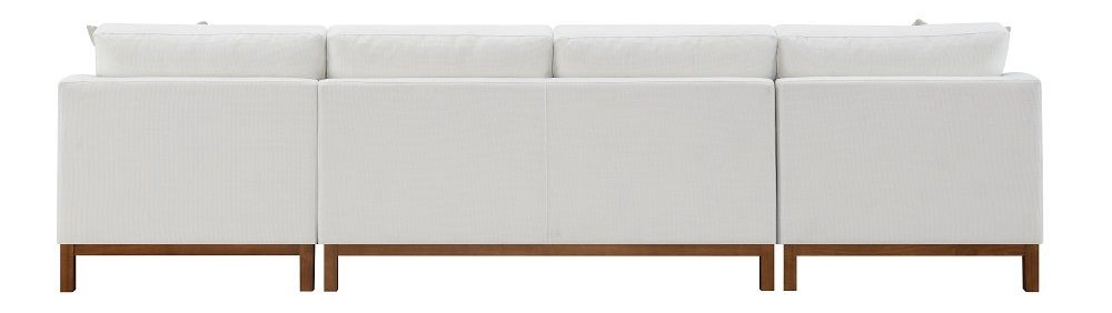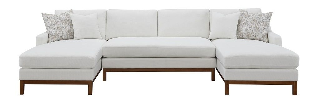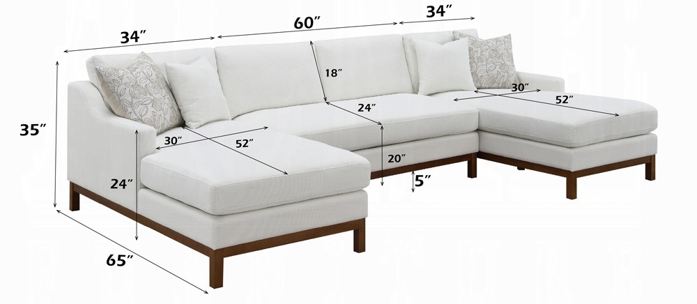 Acme LV01881 3 pc Orren ellis Valiant ivory chenille fabric double chaise sectional sofa with wooden base and pocket coil seating. Sectional measures 127″ x 36″ D center seat x 65″ L chaise x 35″ H . Some assembly required.