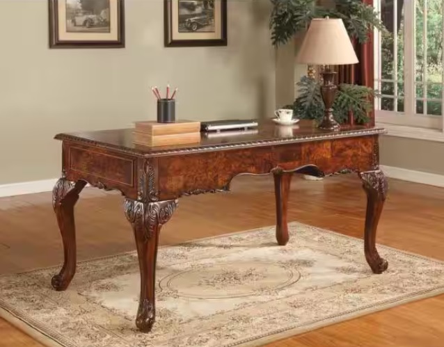 Best Master CD100 Princeton 60″ ornate vintage look walnut finish wood executive desk keyboard drawer. Features center drawer and 2 side drawers. Finished on all sides can sit in the middle of your office. Measures 60″ x 33″ x 33″ H. Some assembly required.