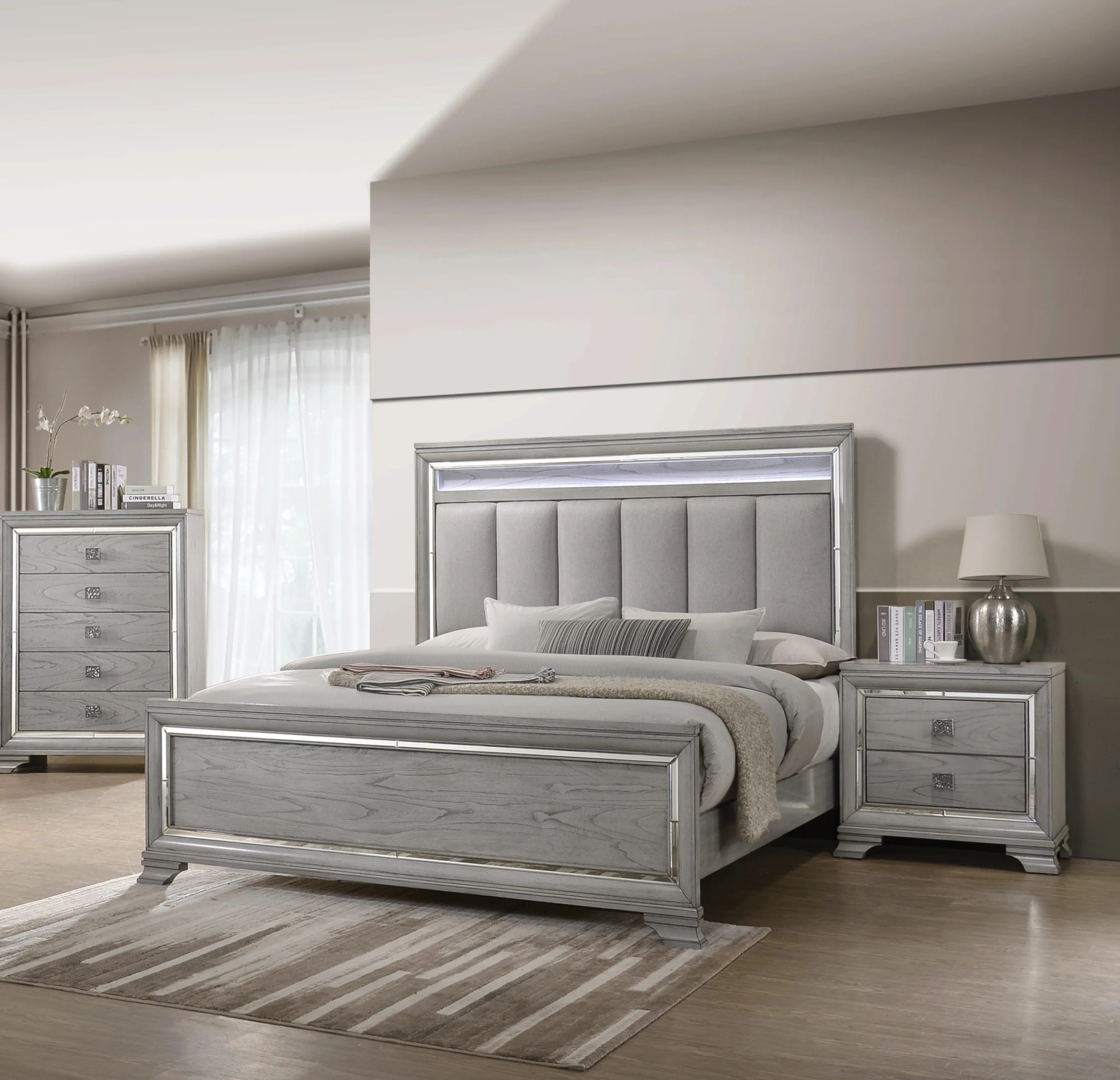 Source: Crown Mark B7200 4 pc A & J homes studio vail metallic finish wood carved design queen bedroom set