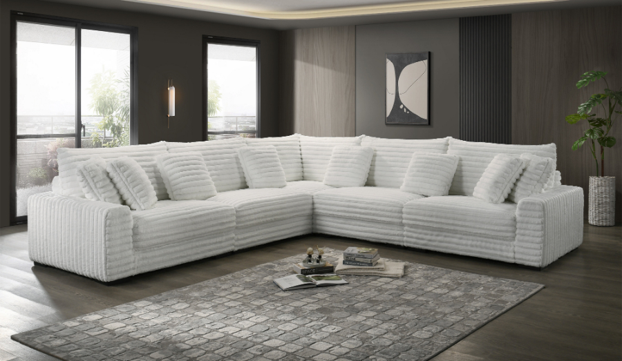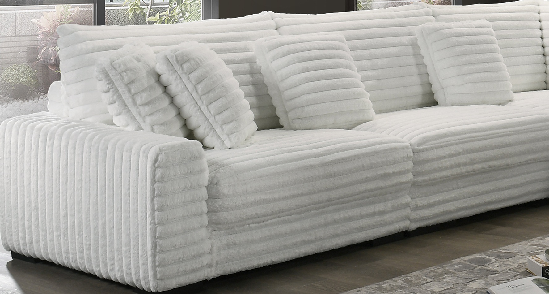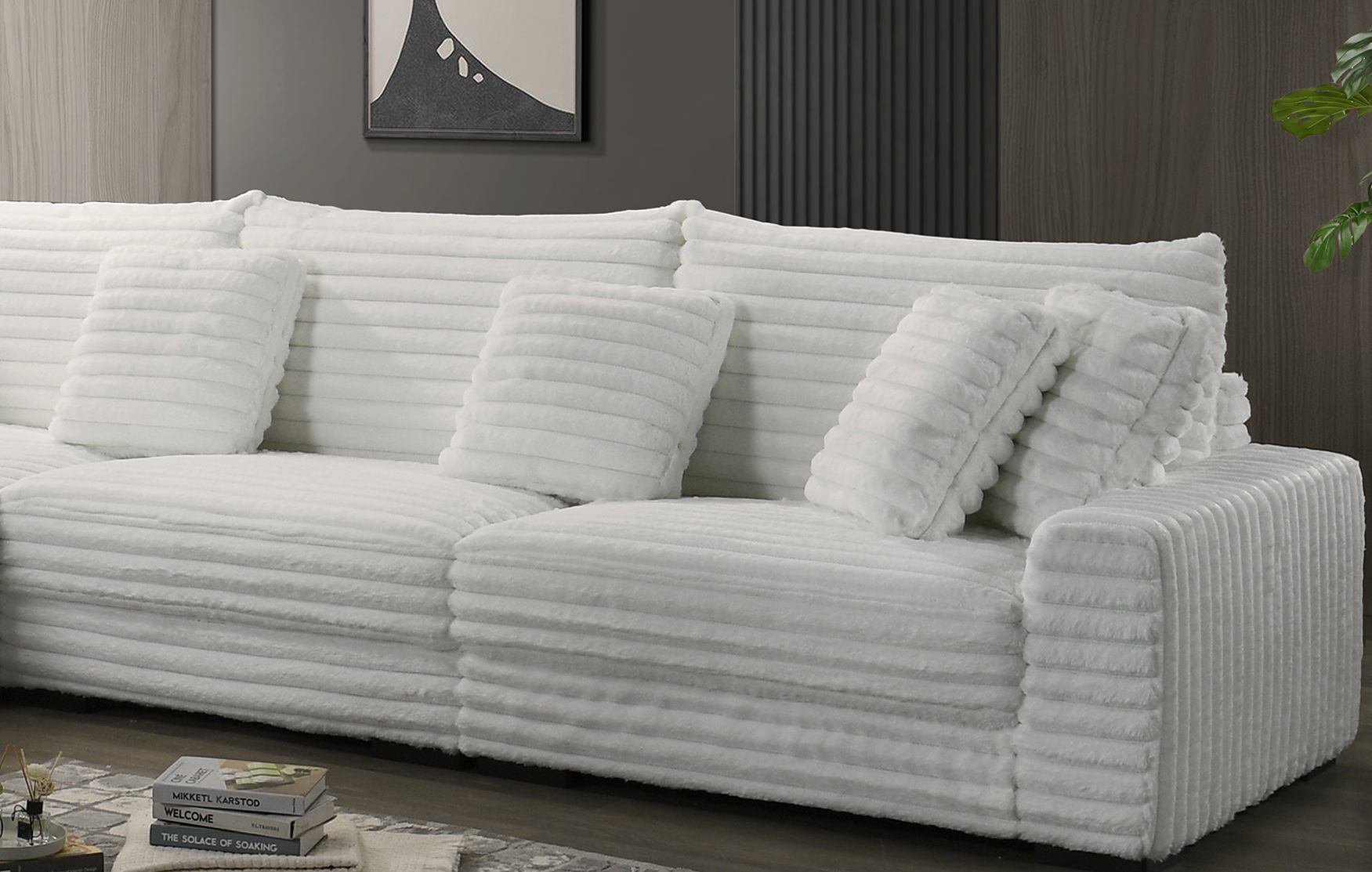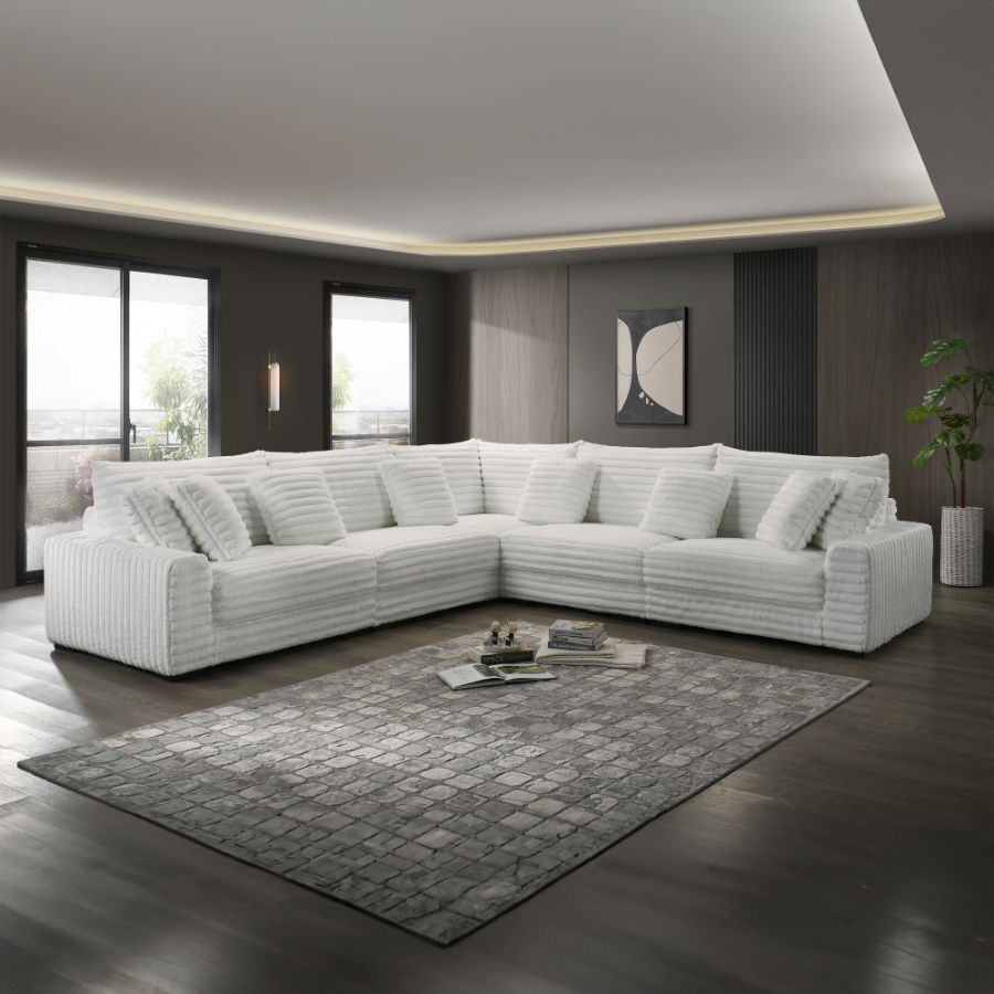 Source: Embrace-WH-5PC 5 pc Embrace white wide corduroy fabric modular sectional sofa with large square arms