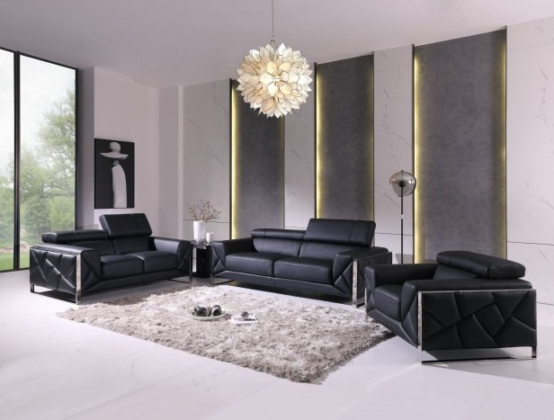 Global United 903BL-2PC 2 pc Orren ellis luigi black italian leather sofa and love seat set. Features Italian leather upholstery and stainless steel accents, and adjustable headrests. Sofa measures 90″x 43″ x 29″ – 38″ H. Love seat measures 72″ x 43″ x 29″ x 38″ H. Some assembly required.