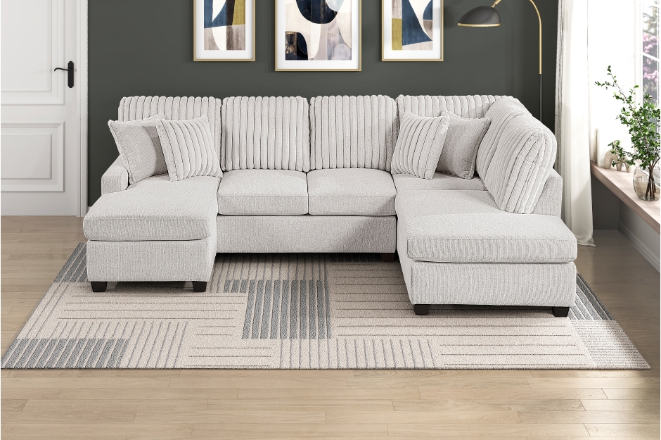 Homelegance 8470TPE-23LCRC 3 pc Lawson taupe chenille and corduroy fabric double chaise sectional sofa. This set includes the armless loveseat and double chaises. Sectional measures 117″ x 80.5″ L chaise x 38.5″ x 40″ H. Some assembly required.