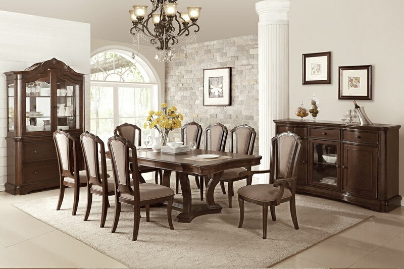 Source: F2454-1737-1738 7 pc Calisty II collection cherry finish wood dining table set with leaf