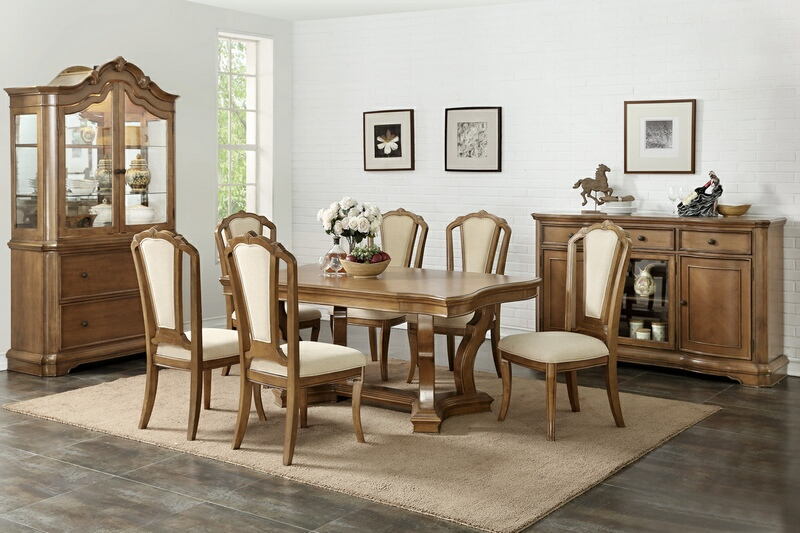 Source: F2455-1741 7 pc Calisty collection medium brown finish wood dining table set