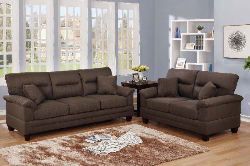 Source: F6406 2 pc Colleen II black coffee linen like fabric sofa and love seat set