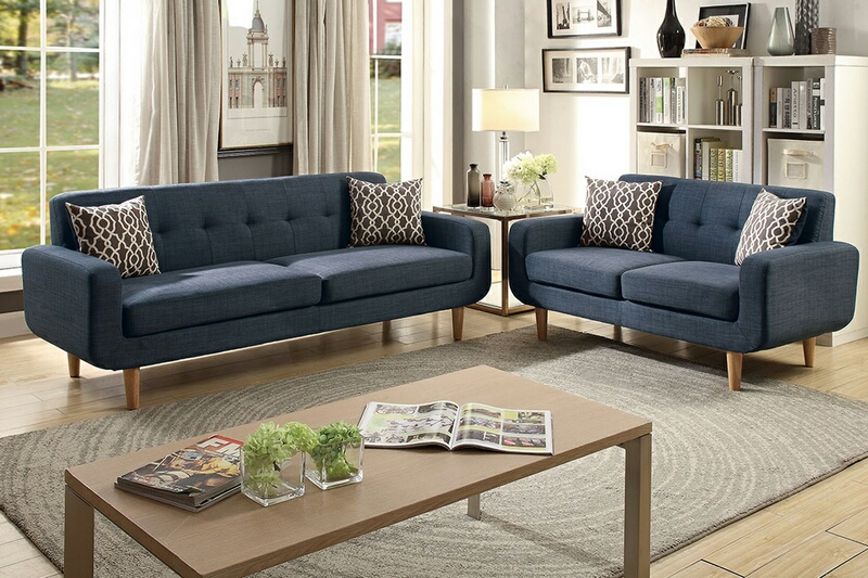 Source: F6526 2 pc Pallisades II dark blue dorris textured fabric upholstered sofa and love seat set